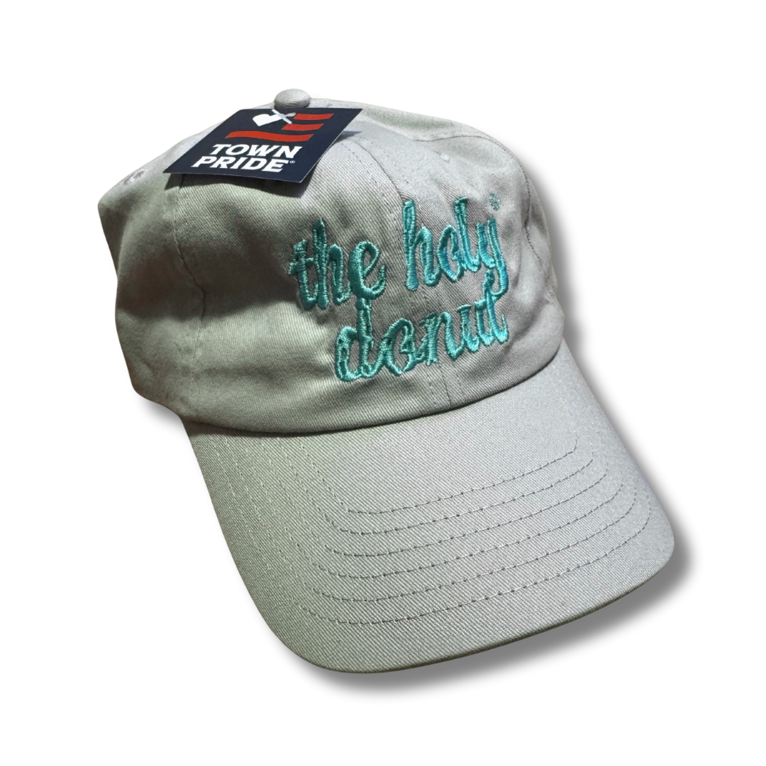The Holy Donut Grey Dad Hat is a comfy, casual classic. Made from 100% cotton with an adjustable antique brass buckle, it features our “the holy donut” script embroidered in teal for a pop of color. Easy to wear and perfect for everyday!